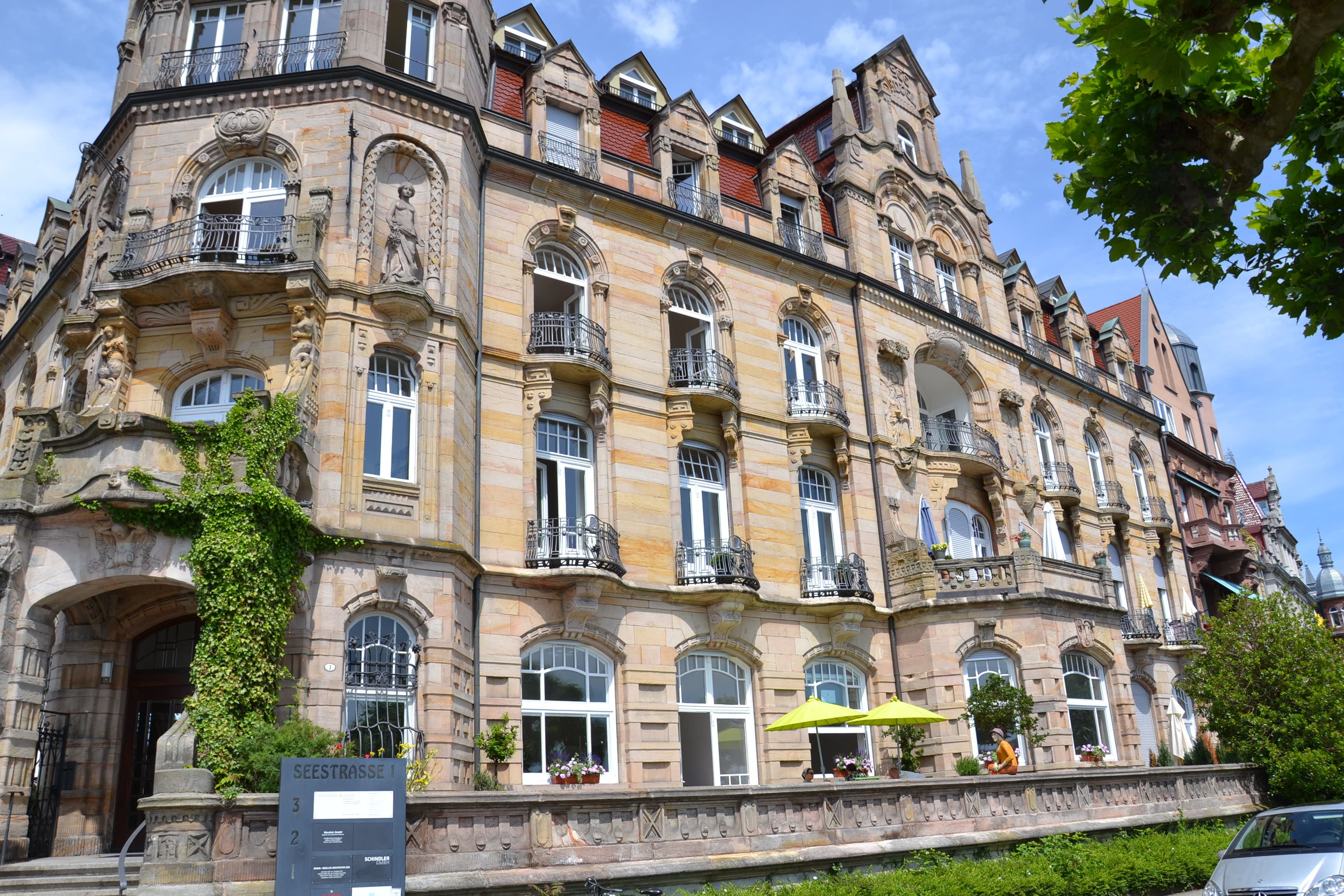 Direkt an der renommierten Uferpromenade der Seestraße gelegen, erzählt dieses eindrucksvolle Gebäude, erbaut um die Jahrhundertwende, einen wichtigen Teil der Konstanzer Stadtgeschichte. Es verkörpert den Charme einer Epoche, in der repräsentatives und zugleich bürgerliches Wohnen in einer der schönsten Städte Deutschlands auf besondere Weise Ausdruck fand.