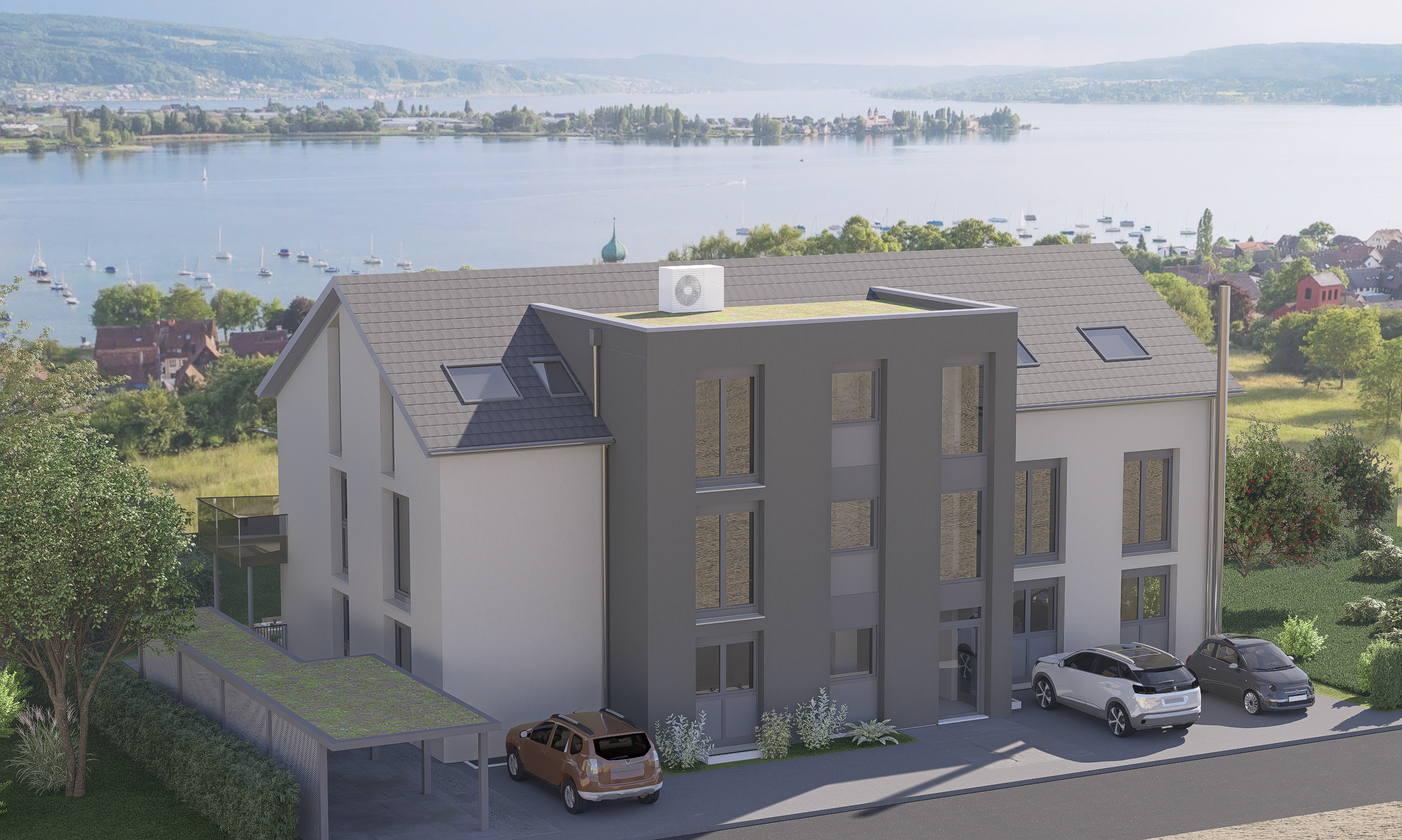 Der Neubau eines 6-Parteien-Hauses ersetzt das ehemalige Pfarrhaus im Stadtteil Staad in Konstanz. Der strikte Bebauungsplan verlangte höchste Präzision in der Planung, wodurch eine effiziente und kompromissarme Flächenausnutzung umgesetzt werden konnte.